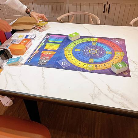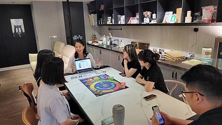 我們這次是跟老師約在我們的空間,所以老師會拉著行李箱在約定的時間出現,然後遊戲開始前,老師會先把桌遊的擺放好~這款遊戲最多可以六個人玩,至於參加對象可以是情侶、同事、家人,然後可以針對不同的需求做調整,都可以跟老師討論你們想透過桌遊達成什麼樣的任務。