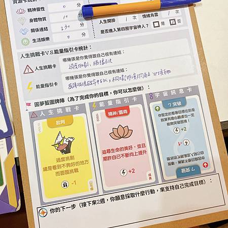 因為這款桌遊有老師帶領,所以基本上完全不需要瞭解太多,就跟著老師的腳步前進就可以了!因為有老師的這個旁觀的角色,更能夠在適當的時候提醒大家要注意的細節,或是告訴你自己沒看見的盲點。比如我們之中有人一直抽到一樣的牌卡,而且兩次都翻到一樣的結果,老師就會提醒他是不是有什麼該注意的地方。
