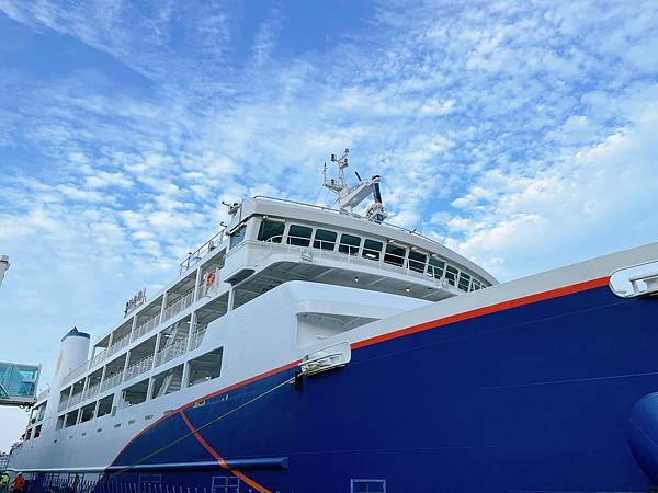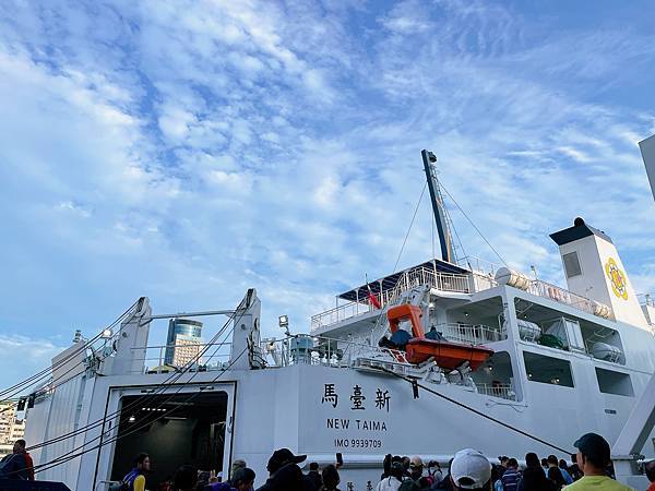 看人的高度跟船的高度就知道新臺馬輪真的很大台!跟我去蘭嶼的船比起來小好多,更別說跟淡水渡船比!但是因為是航行在海上,所以就算很大台,還是有點晃啊~我一開始搭新臺馬輪時還很興奮,想說以後可以來規劃郵輪旅遊,但是在上面我真的晃到不行,極度想下船!