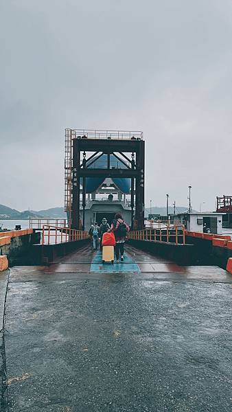 第一次搭新台馬輪這麼大台的船,要上船時整個超級興奮!因為在搭船之前我完全沒有先上網爬文,所以真的不知道這傳有這麼大台~在搭船之前會需要過安檢、檢查身份證,有點像是搭飛機那樣的檢查,檢查完畢才可以到這邊走上船!只是飛機的行李是托運,但新臺馬輪就是自己把行李拉上船上放好!