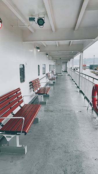 郵輪的外側走道有一些椅子,航行的過程中,我看到蠻多人都會出來坐在這個椅子上面吹風、吃泡麵。畢竟航行的時間蠻長的,所以在外面吹吹風也是挺好的!