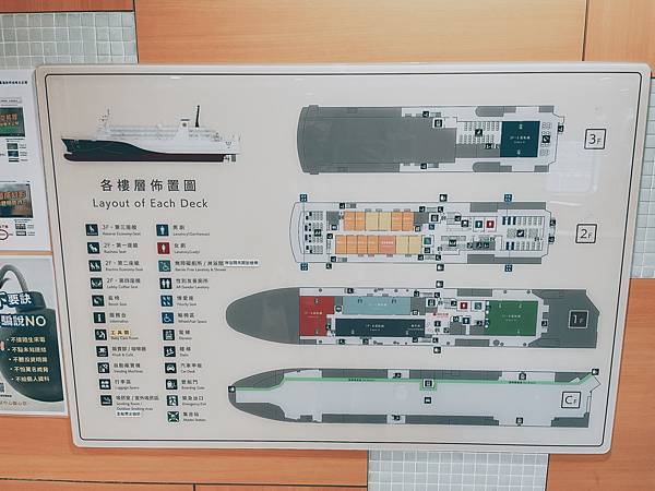 新台馬輪因為是新的郵輪,所以整個空間非常乾淨,也都非常的新!裝潢也非常的時髦,是溫暖的木質調~不會說是很old school那種!難怪民宿老闆會問我們在不在意搭的船是不是新台馬輪!