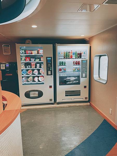新臺馬輪上面除了餐廳還有販賣機~主要就是販賣飲料、餅乾跟泡麵!選擇算多,但是要說多的話也不算多!中午時間會發現販賣機跟飲水機會出現排隊人潮,所以大家可以避開間用餐尖峰吃!