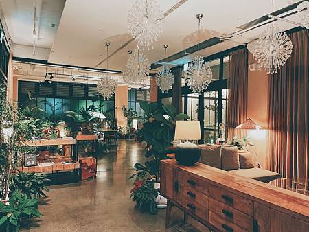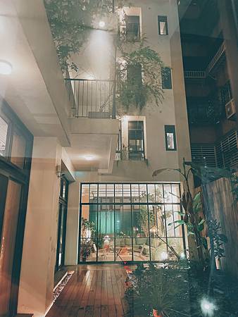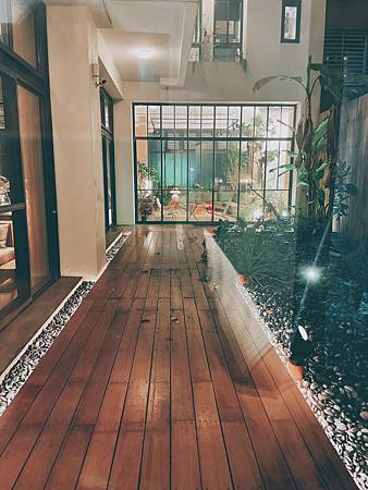 這是一樓戶外空間的地方,木地板跟造景也用得很美~如果不是因為來的季節是夏天真的太熱,不想離開冷氣房,在這邊拍照應該會很不錯!