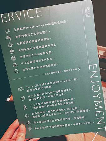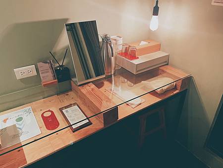 房間內的物品都非常有質感也很溫馨,可以看出來是有精挑細選的!例如喝水的玻璃杯是無印良品的,還有房間內的擴香味道也超好!我坐在這邊滑手機時,都會聞到淡淡的香氣,蠻舒服放鬆的!