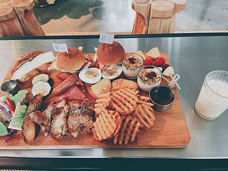 再來早來我們訂的是有附早餐的房型~蠻特別的就是他的早餐是兩人份裝一盤!雖然我不知道為什麼要這樣裝,因為吃起來有點不方便,但是也還是就這樣吃了兩天!早餐的部分非常豐盛,根本就是我去咖啡廳吃早午餐的等級!然後每個餐點都挺好吃的,不會因為是住宿提供的早餐,就有那種味道走偏的感覺,每個的味道都蠻好的,根本早午餐!