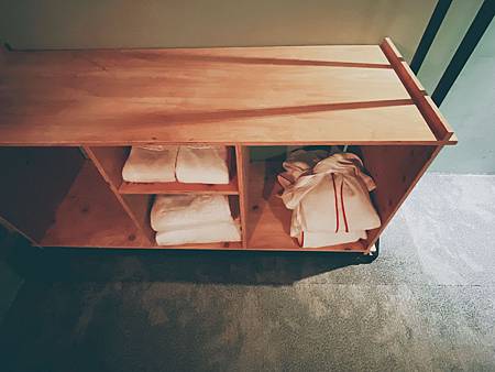 房間內也有掛衣區跟毛巾們~我還蠻喜歡這種開放式的掛衣空間!掛上自己的衣服後就會很有生活感,但是又整整齊齊的!有的房間會在牆上設計掛勾,但是我個人不喜歡我的衣服碰到牆壁,所以像這樣可以獨立吊掛的掛衣區讓我很滿意!