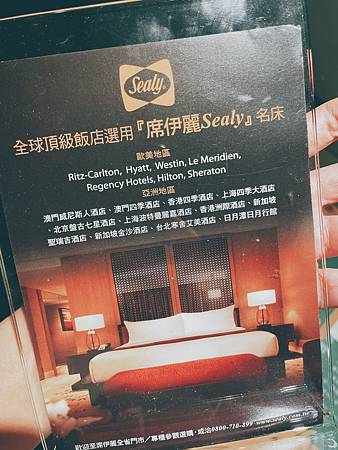 嬉行旅讓我很期待的第二個點就是這個!席伊麗的床墊~雖然我對床墊也沒有太多的偏好,就是不喜歡太軟的而已,但是看到標榜席伊麗時,就覺得要好好來感受一下!房間內的床墊不會太軟也不會太硬,我自己覺得躺起來很放鬆,因為是有支撐力的Q彈!然後我男友的體重比較重,所以有時候我躺在他旁邊,都會感覺床從他那邊陷下去,然後我躺起來就覺得不舒服,因為斜斜的!但是這次躺的床墊卻沒有給我感受到那種陷下去的傾斜感~很喜歡!以後買房子也要考慮這家的床墊~