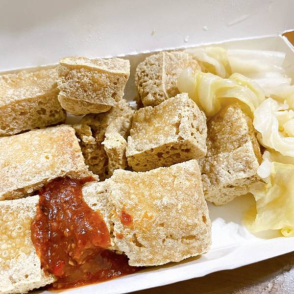 雖然視覺上的顏色比較單調,但是泡菜的部分不會過酸或太鹹,搭配臭豆腐吃還蠻清爽的!