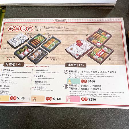 旁邊的櫃子擺放了一些文宣品,主要就是展示麻糬、還有禮盒包裝的樣子!