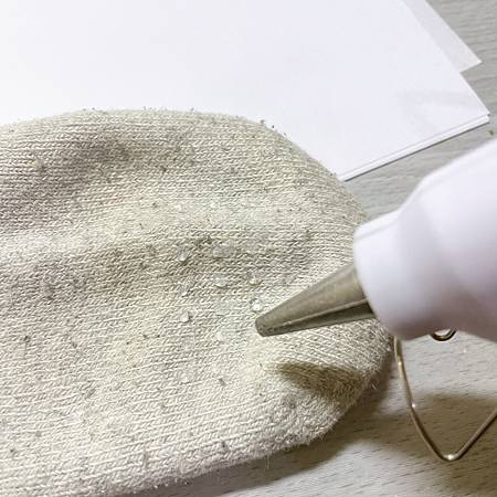首先,我用熱融膠在我的毛襪上擠了一顆顆小小的顆粒!