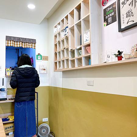 偷撕吐司新竹店的裝潢是以芥黃色跟白色系為主!