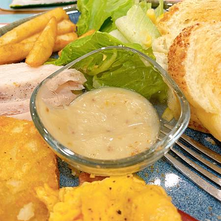 但是其實它沙拉的部分是沒有醬汁的,所以我沙拉也都沾這個醬吃!
