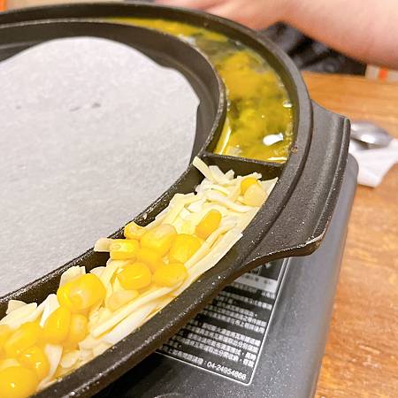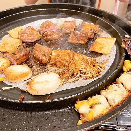 我們的韓式鐵盤燒肉上桌啦!韓式鐵盤燒肉的外圍,都會有這個雞蛋燒還有玉米起司!吃了很多肉之後,吃吃這雞蛋燒跟玉米起司還蠻解膩的!只是大家要注意這兩個東西~我們每次都太認真烤肉吃後,結果每次要吃這個的時候都已經烤焦或是太乾了!所以大家千萬要記得隨時注意邊邊這兩個小點心啊!