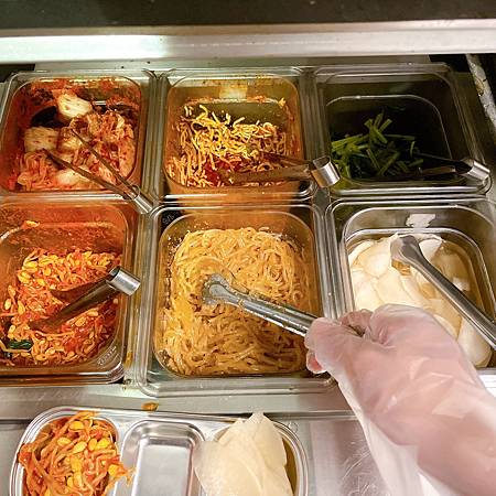店家點餐後會發給你這個碟子,你就可以到小菜區自取你喜歡的小菜了!然後大家如果人數比較多來,就可以每種小菜都取一點分著吃!只能說我完全被這個小菜收買了~每次吃韓式最期待的就是吃小菜!