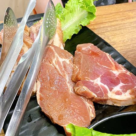 SU韓式料理的鐵盤燒肉不是吃到飽的,只能選擇肉的種類,豬肉、牛肉這樣,然後店家就會準備給你了!第一次看到這樣的生肉時,還真的有點嚇到,比竟去燒烤店或火鍋店,看到的都是切好小小片的!不過去韓國吃燒肉時,真的就是會給你這樣一大片的,然後附上一把剪刀!